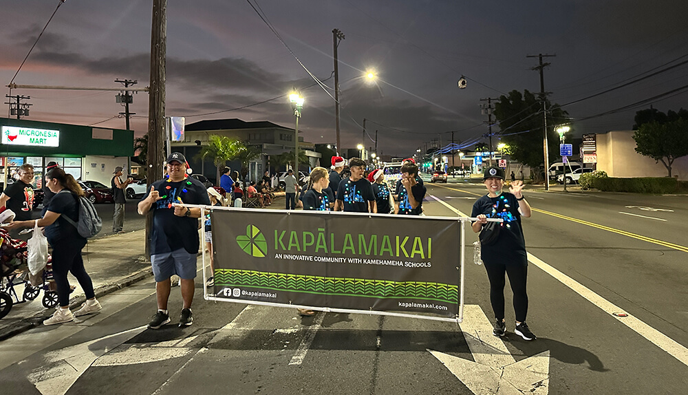 The festivities began at Kalihi Union Church, where our Kapālama Kai ʻohana joined the procession with bright smiles, festive attire and a sleigh full of goodies to share. Marching down King Street, we passed familiar landmarks like Farrington High School and Damien Memorial School where the faces of keiki lit up with excitement in anticipation of Santa’s arrival at the end of the parade. The procession continued on, reaching the grand finale at Kamehameha Shopping Center, where families gathered to enjoy the sights and sounds of the season.